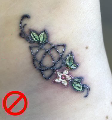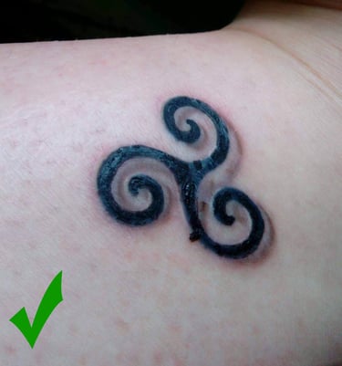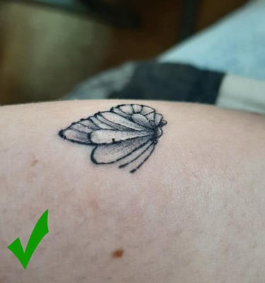 Tatuiruotės priežiūra yra kliento atsakomybė! Kaip sugydysite - taip ir turėsite. Kaip meistras padarys tatuiruotę - iškart matysite. Jei bus kažkas blogai padaryta iš meistro pusės - matysis iškart, ypač jei bus per gyliai suvestas rašalas į odą, išsilies iškart, ne vėliau. Kaip atrodys po gijimo - tai visiškai priklausys nuo jūsų.