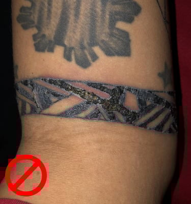 Viso gijimo laikotarpį - 2 savaites, griežtai draudžiama: mirkti vonioje, eiti į saunas ar baseinus, vandens telkinius, sportuoti ar vykdyti aktyvią veiklą. Venkite veiksnių nuo ko galite daug prakaituoti ar labai judėtų, tampytųsi oda. Du mėnesius tatuiruotę reikia saugoti nuo tiesioginių saulės spindulių (pvz. nesideginti) bei nesilankyti soliariumuose. Būnant ant saulės - naudokite kremą nuo saulės su SPF 50.