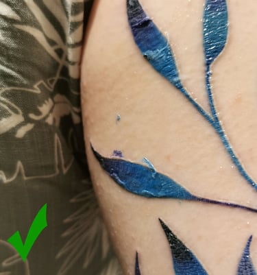 Po tatuiruotės padarymo jums bus uždėta speciali plėvelė. Ji yra kvėpuojanti ir elastinga, sukurianti drėgną žaizdos gijimo procesą. Su šia plėvele reikia būti 5 dienas (nebent meistrė paskiria kitokį gydymo laikotarpį).